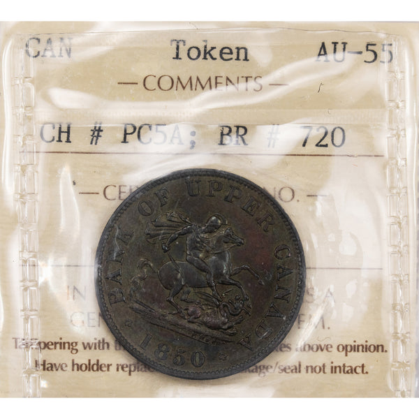 Upper Canada 1850 1/2 Half Penny Token PC-5A Br #720 - ICCS AU-55