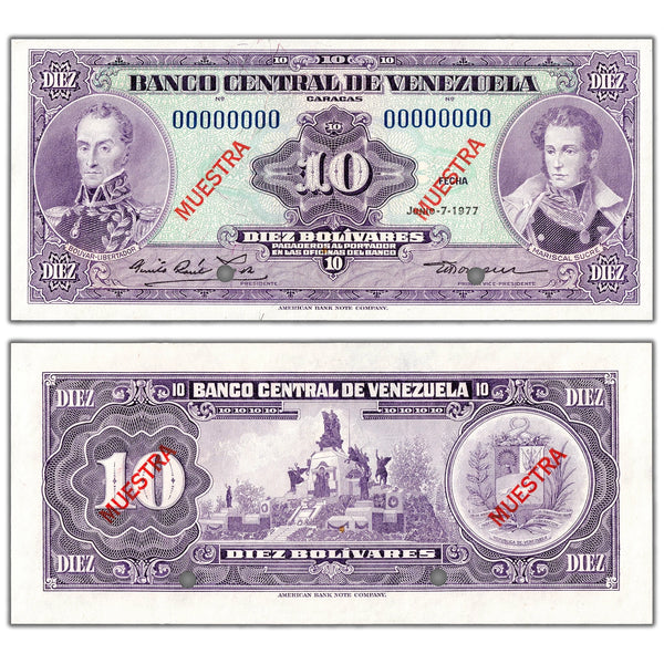 Venezuela 1977 10 Bolivares Specimen Note P #51s3 - Uncirculated