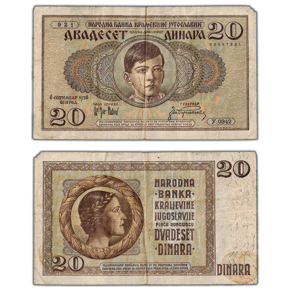 SOLD Yugoslavia 1936 20 Twenty Dinara Banknote P #30 - Missing Corner